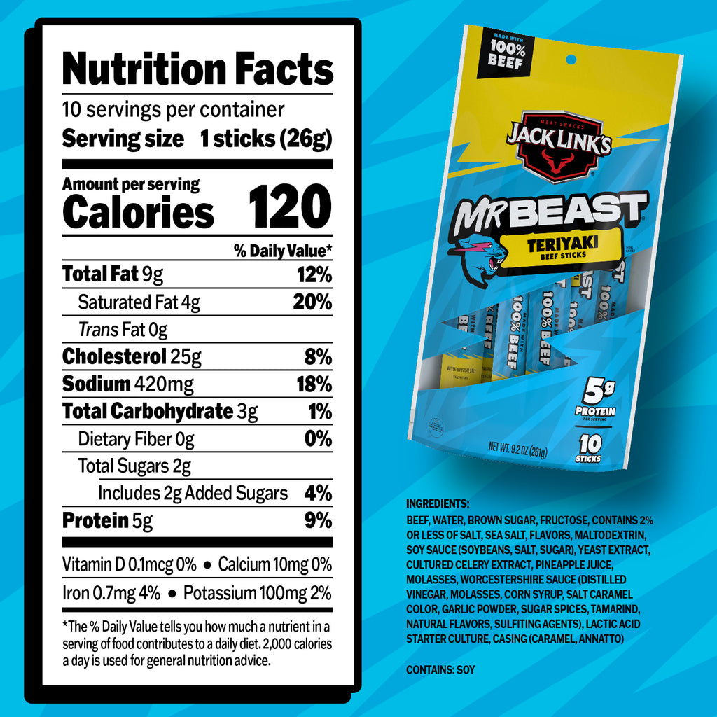 Jack Link's Teriyaki Beef Sticks are my favorite grab-and-go snack. The flavor is perfectly balanced — slightly sweet, smoky, and savory without being too salty. Each stick is individually wrapped, fresh, and satisfying without being greasy. Great texture, high in protein, and super convenient for work, travel, or post-workout. I've repurchased these multiple times and will keep coming back!